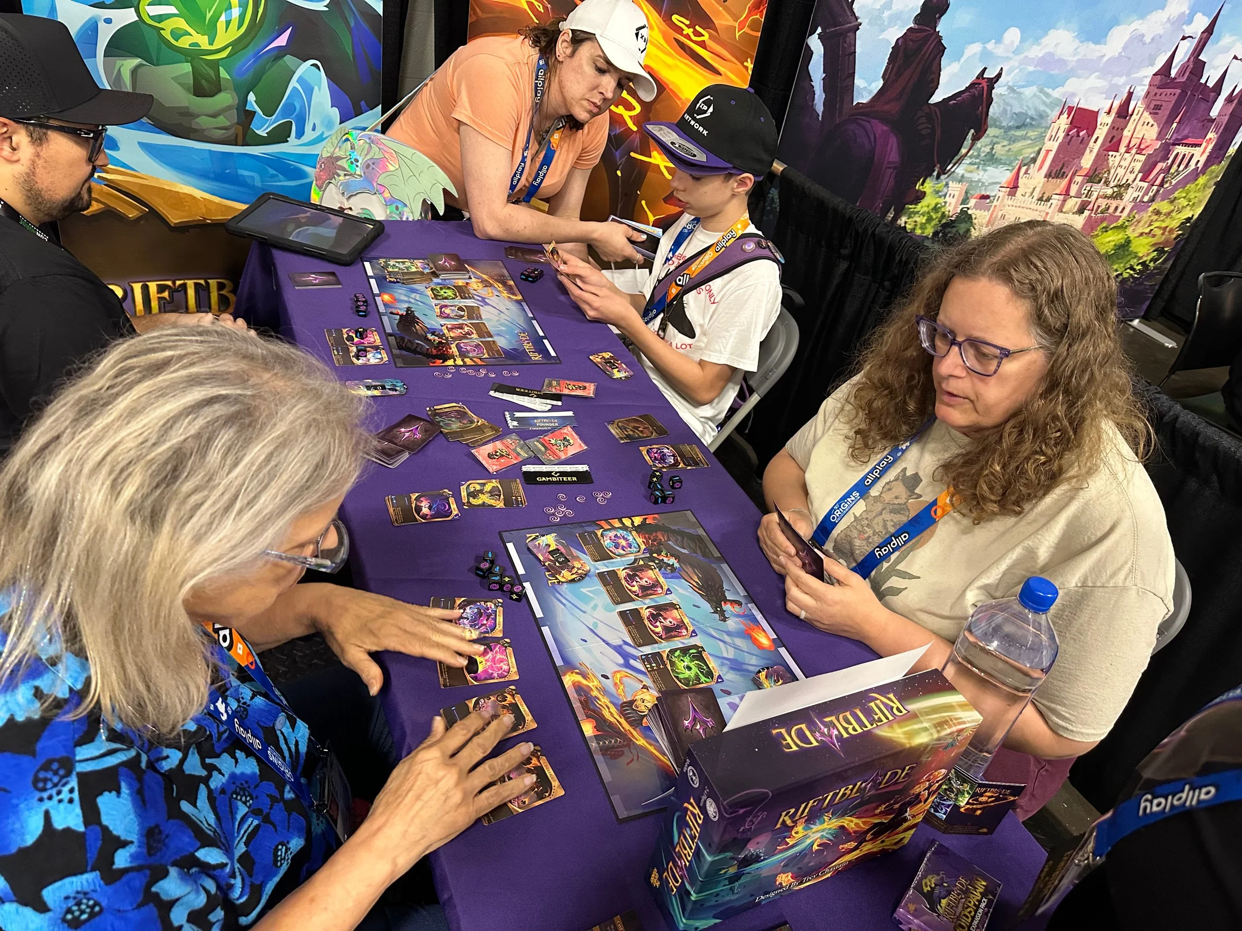 Throughout the convention, our booth was buzzing with activity. Players of all stripes—seasoned deckbuilding duelists, curious onlookers, and brave first-timers—sat down to try Riftblade. Demo tables filled quickly, games moved fast, and we heard the same thing again and again: “I can’t wait for the Kickstarter.”