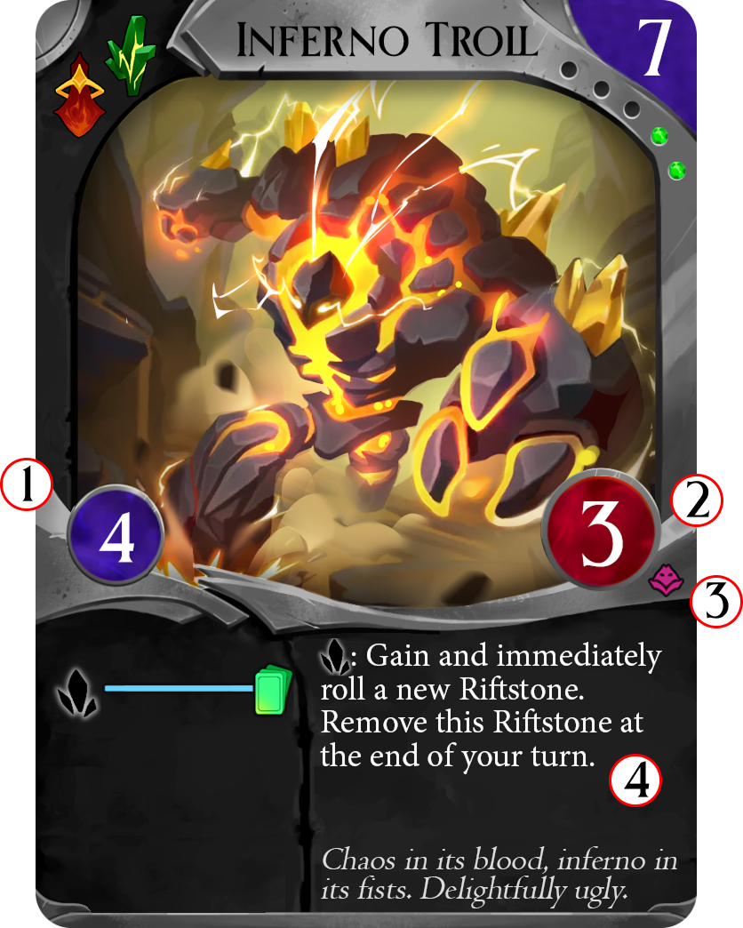 Dieser Abschnitt erklärt die neuen Elemente einer Voidspawn-Karte. Für weitere Details zum Kartenaufbau findest du mehr auf der Regelseite.